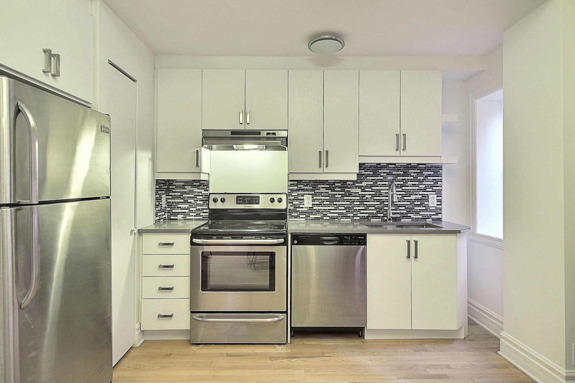 Réfrigérateur Cuisinière Lave-vaisselle Eau chaude Plancher de bois francInstallations